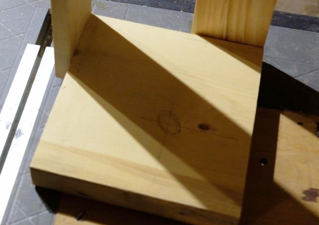 1. Cut the side boards to size. These side boards hold the dowel that the paper roll slides onto. I made mine out of 2-by-10 material, but scraps of ¾-inch plywood will work as well. Using a circular saw, cut the boards down to equal dimensions. I cut my 2-by-10 material in half, which gave me two 8-by-9.5-inch rectangles.